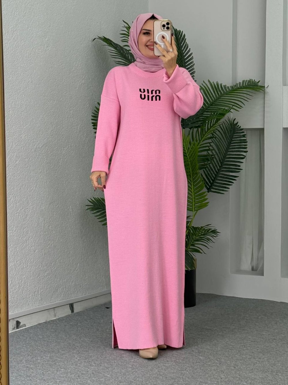 Ahu Triko Elbise Pembe