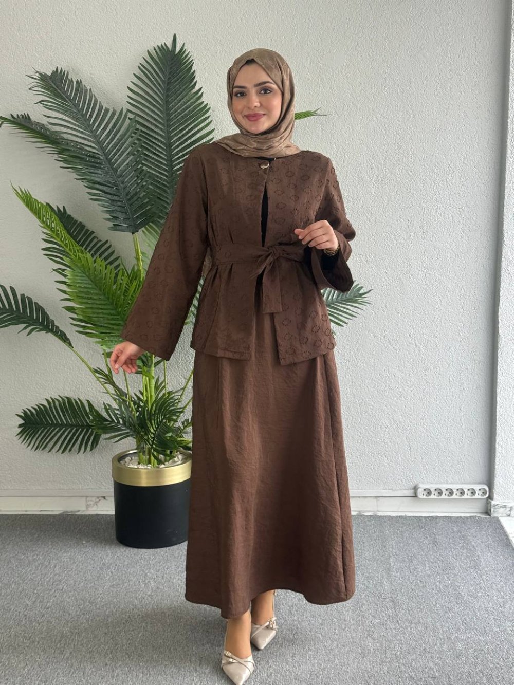 Alina Etekli Takım Kahverengi