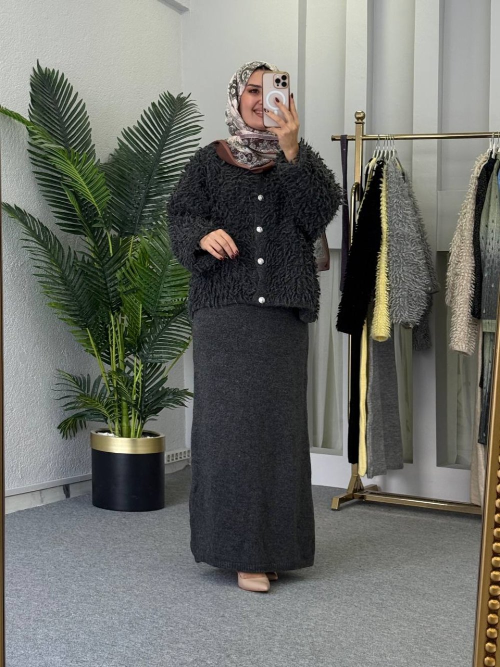 BİRİCİK Desenli Hırkalı Elbise takım Siyah