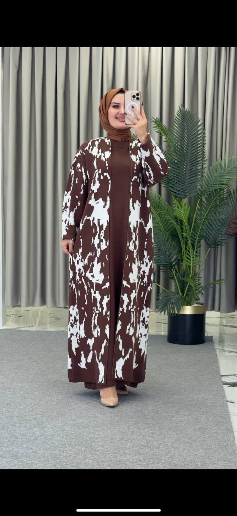Ceylan Desenli Hırkalı Elbise takım