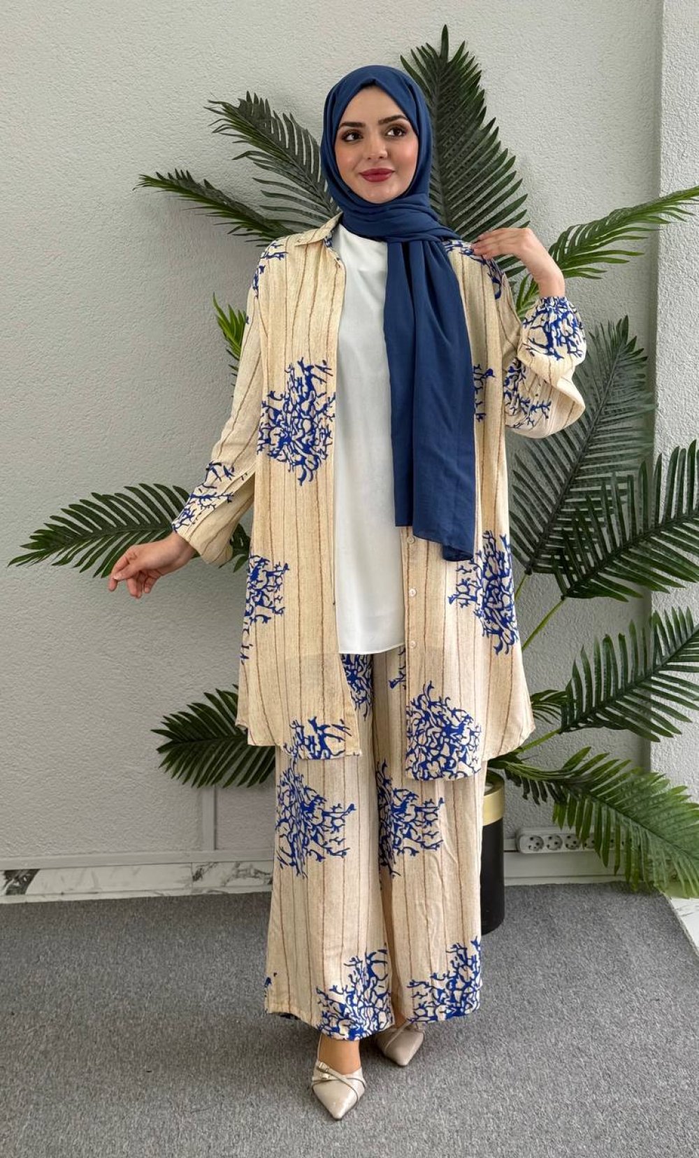 Modern zarafet ve klasik desenin buluştuğu Nazlı Zerafeti Tunik & Pantolon Takımı, rahat kalıbı ve dökümlü viskon kumaşıyla gün boyu konfor sunarken, stilinize şıklık katıyor.