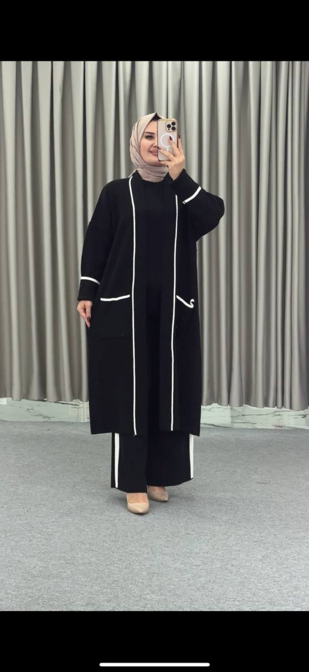 PERİVAN desenli yeleklİ  triko takım Siyah