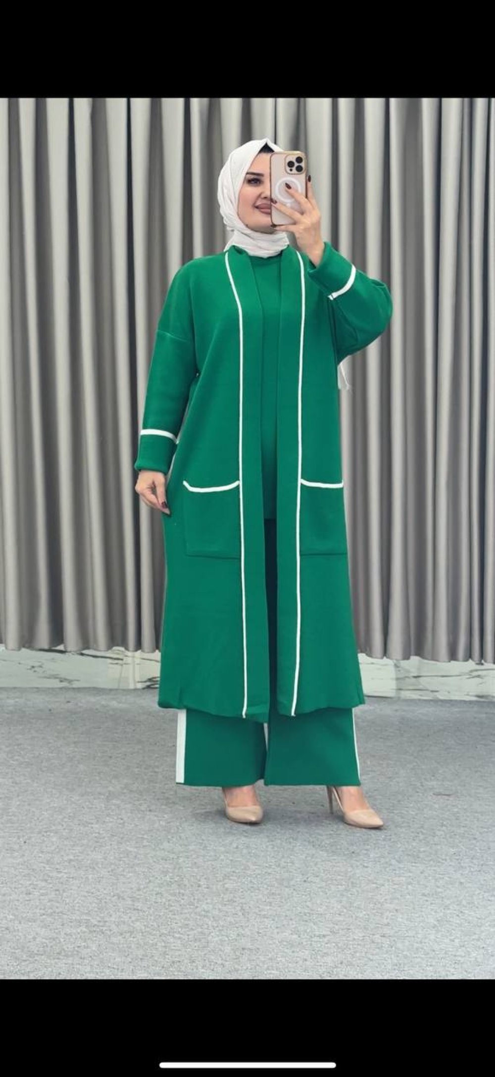 PERİVAN desenli yeleklİ  triko takım Vizon