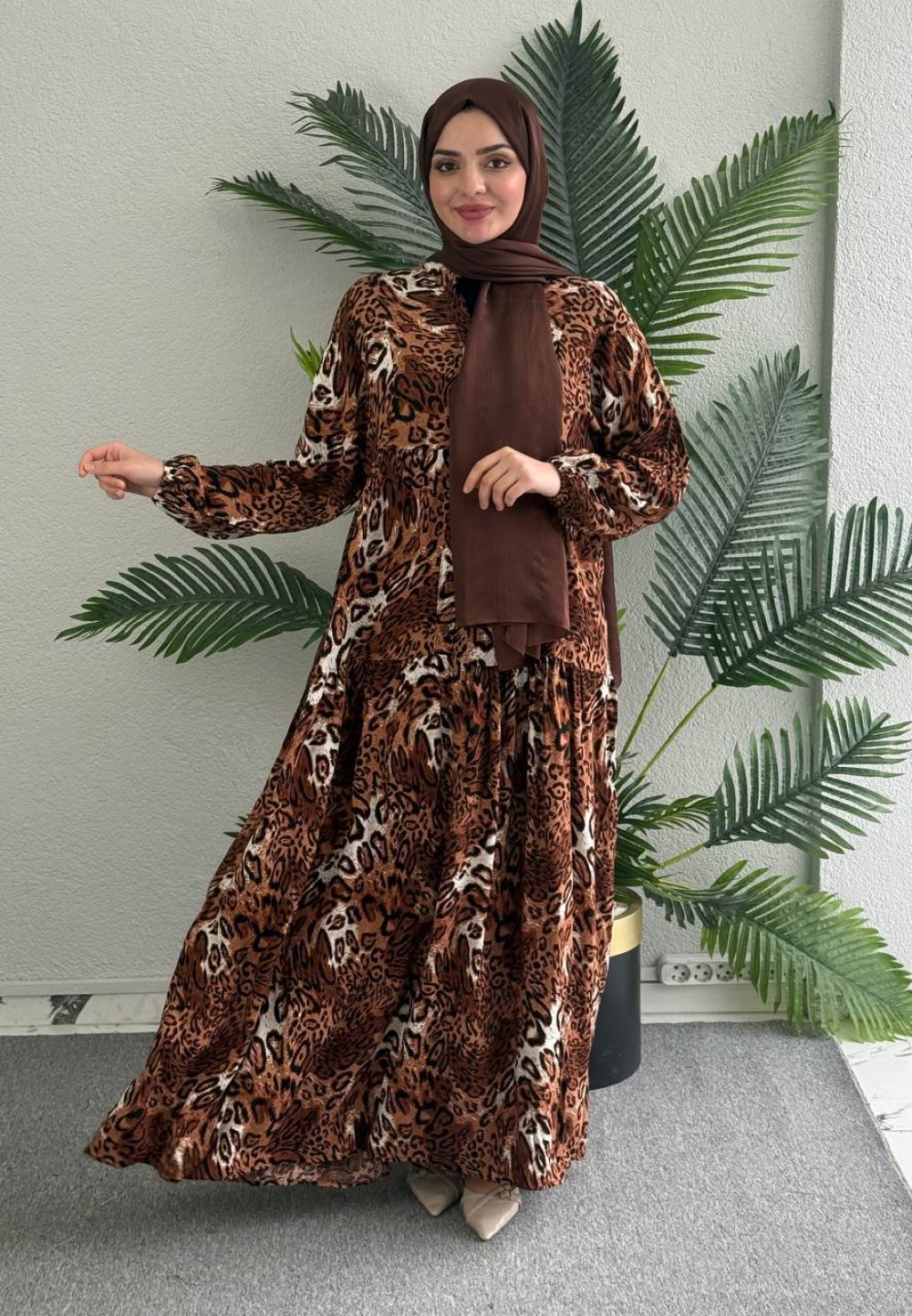 Rüya Leopar DESENLİ VİSKON ELBİSE