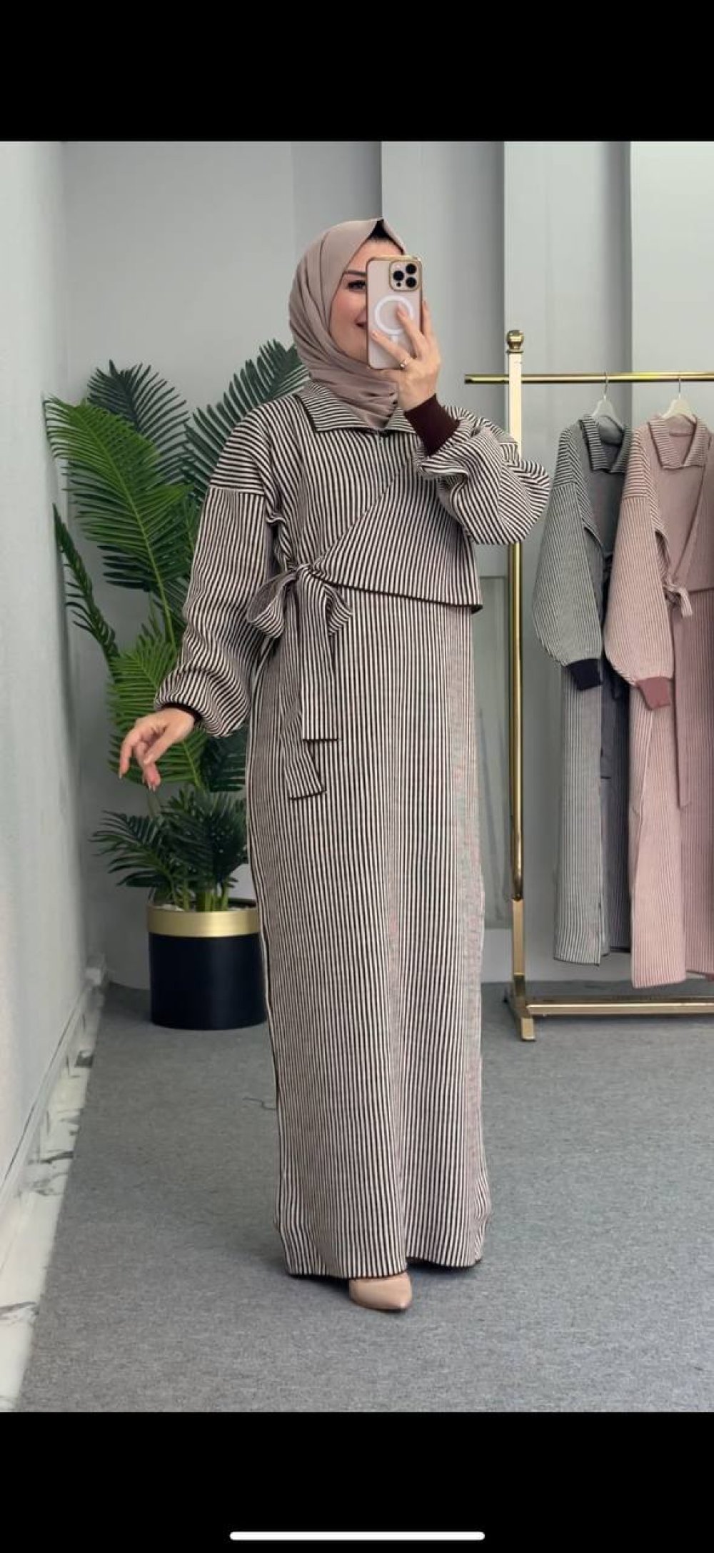 Zebra Desenli Triko Elbise Koyu Kahverengi
